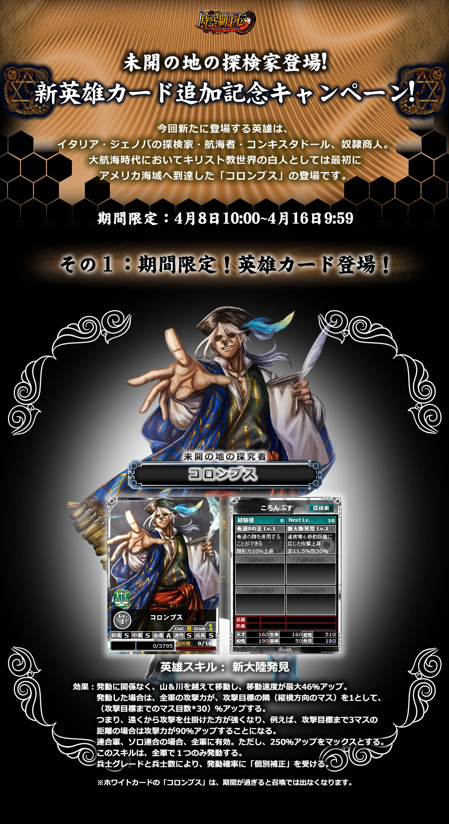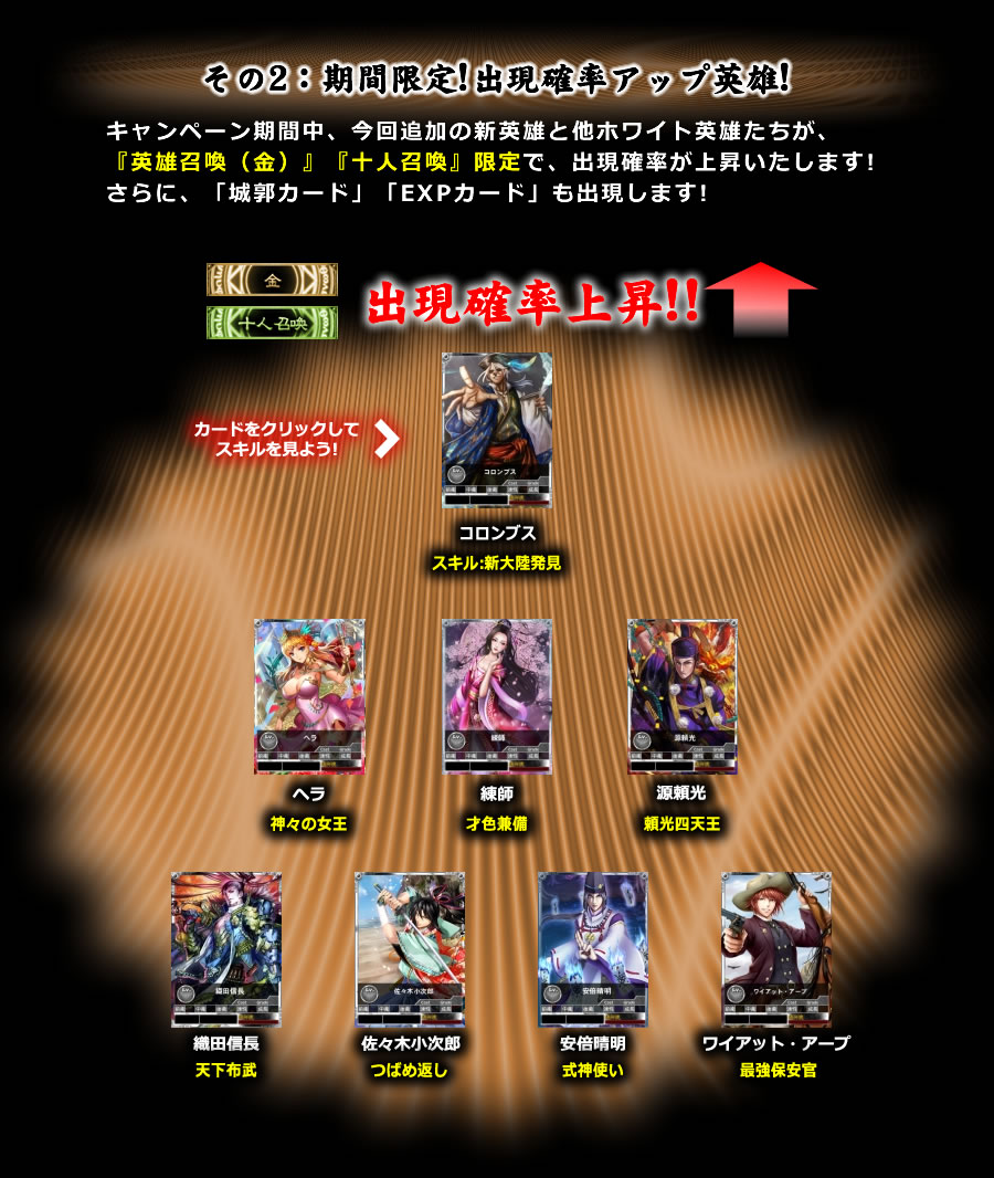 新大陸発見 神々の女王 才色兼備 頼光四天王 天下布武 つばめ返し 式神使い 最強保安官