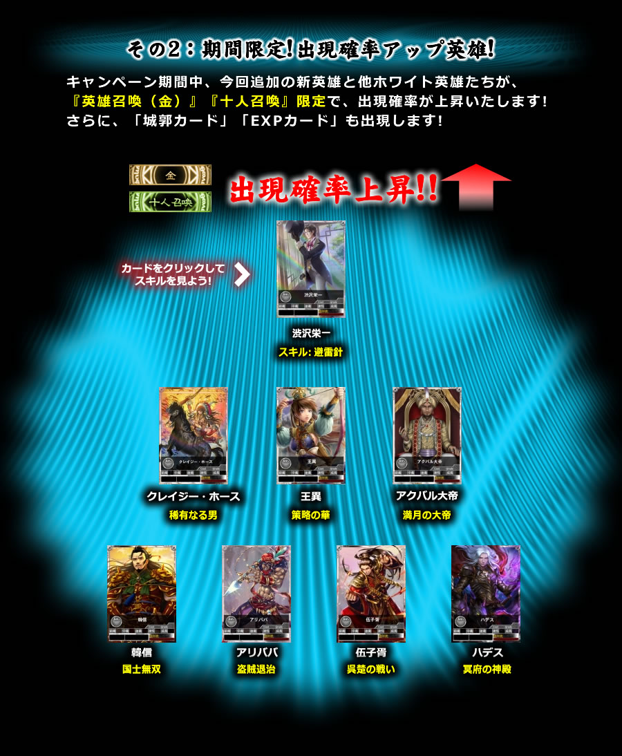 渋沢栄一 クレイジー・ホース 王異 アクバル大帝 韓信 アリババ 伍子胥 ハデス