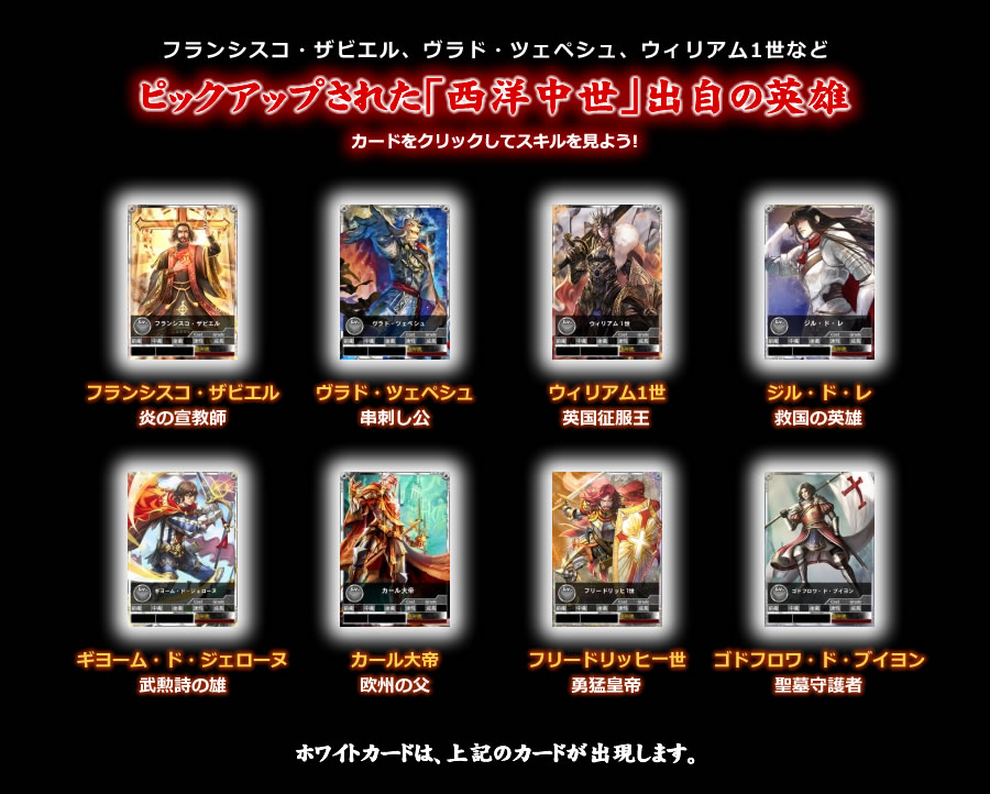 フランシスコ・ザビエル ヴラド・ツェペシュ ウィリアム1世 ジル・ド・レ ギヨーム・ド・ジェローヌ カール大帝 フリードリッヒ一世 ゴドフロワ・ド・ブイヨン