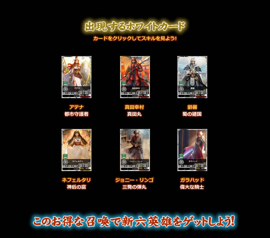 アテナ 真田幸村 劉備 ネフェルタリ ジョニー・リンゴ ガラハッド